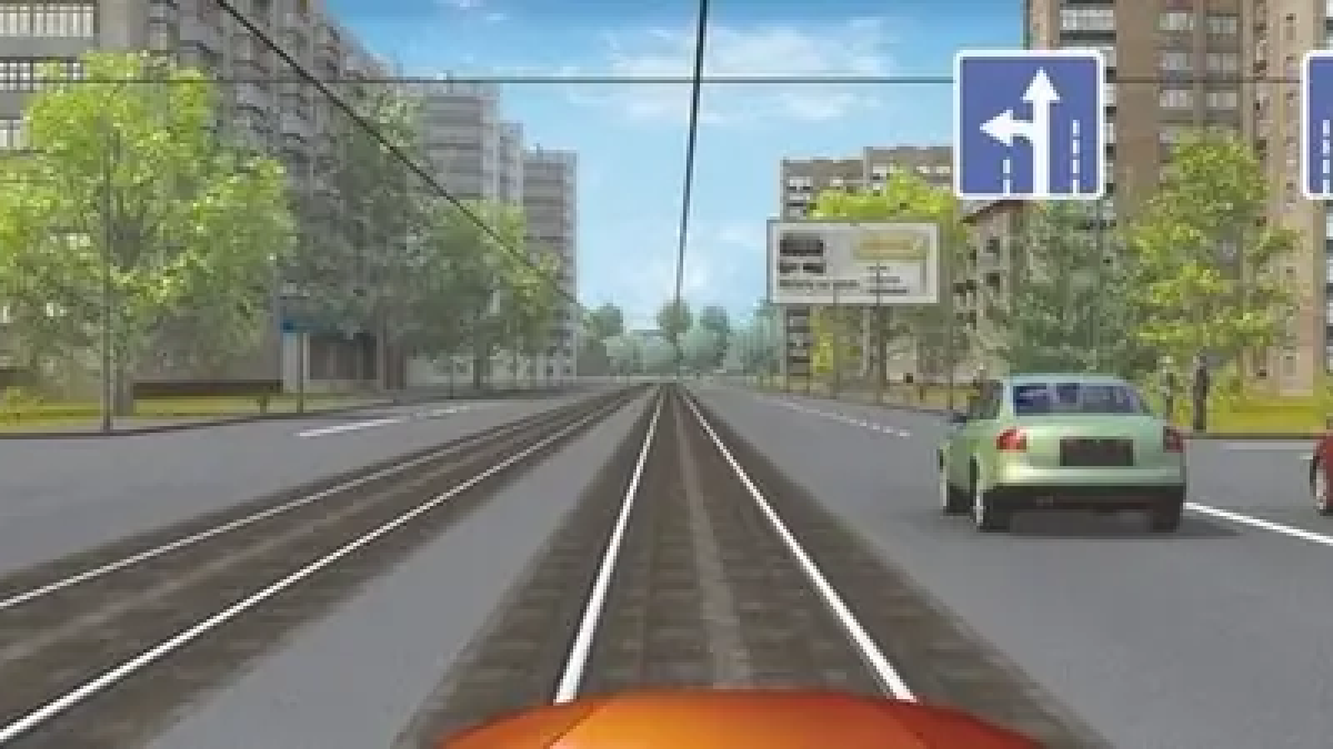 Можно ли вам на легковом ТС продолжить движение по трамвайным путям попутного направления?