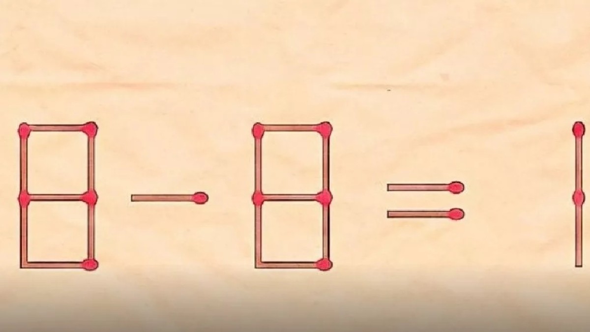 Протестируйте свои ментальные возможности с нашей задачкой на перестановку спичек. Вам дана картинка «8-8=1», содержащая арифметическую ошибку. Требуется переставить только одну спичку в этой записи, чтобы получилось верное равенство. Убирать, ломать спички мы вам не рекомендуем, все и так получится.