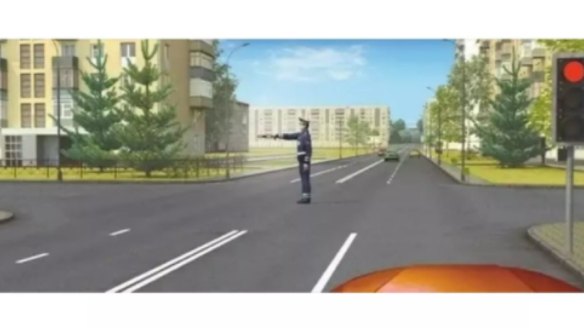 Информация для самоконтроля. Раз на дороге регулировщик, смотреть необходимо только на него, игнорируя светофор.