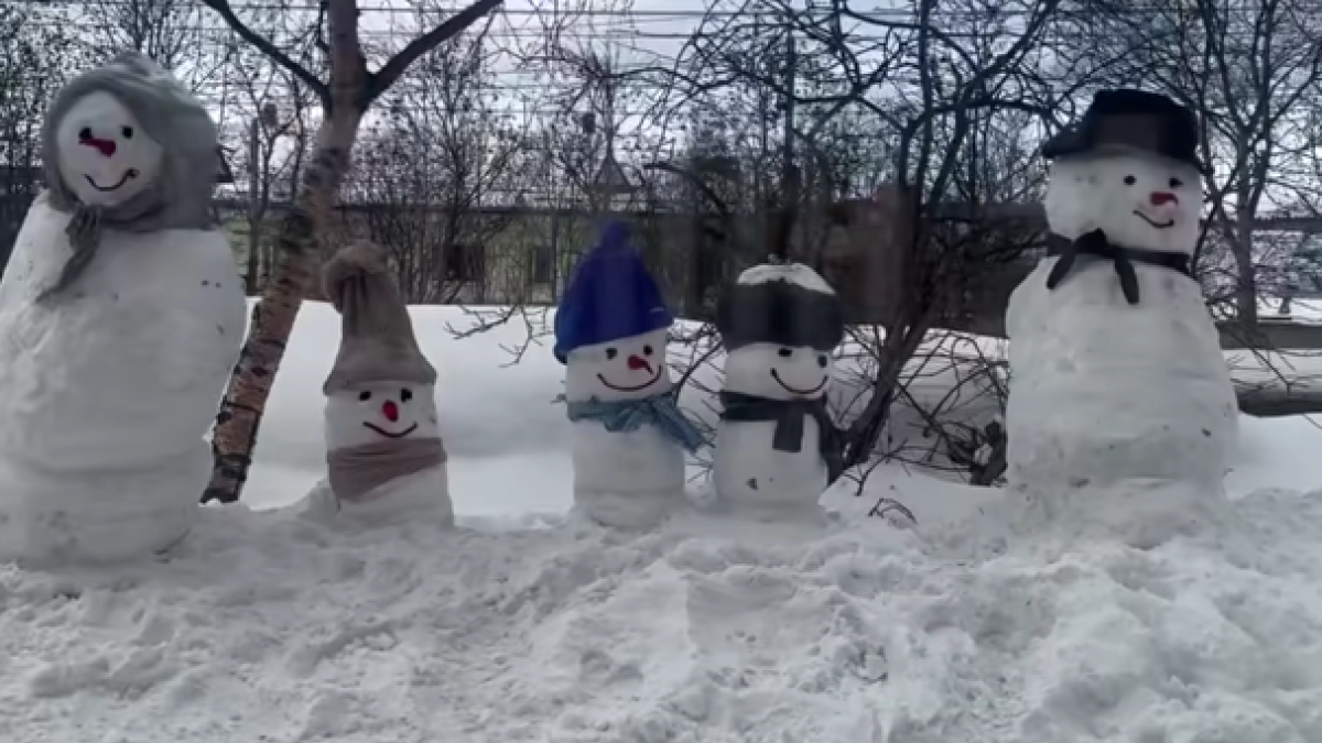 Компания из шести снеговиков в шляпах и шарфах будет радовать местных жителей и гостей города до апреля, если зима не закончится в регионе преждевременно.