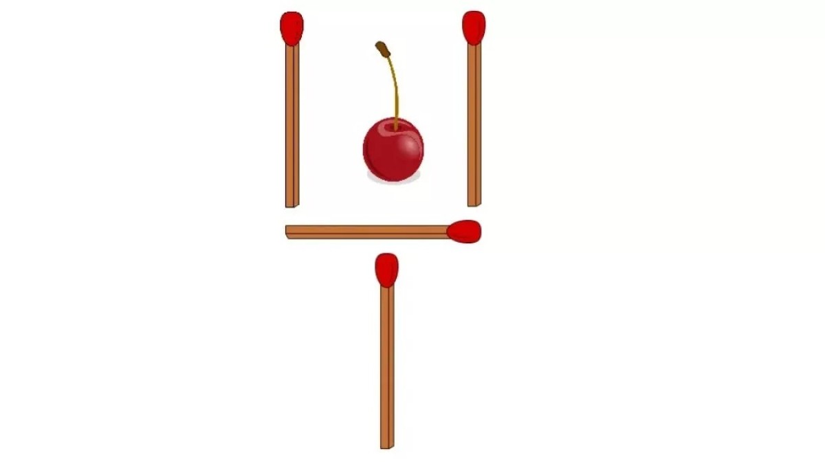 Необходимо достать вишенку из бокала, не повредив его. Это значит, спички нужно переставить так, чтобы форма предмета не поменялась. Утро для вас будет бодрым, если получилось справиться с такой загадкой.