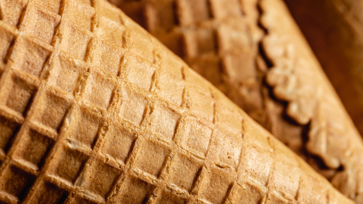 Готовое тесто порционно выкладываем в разогретую вафельницу и выпекаем до румяности. Пока вафли горячие, быстро сворачиваем их в трубочки.
