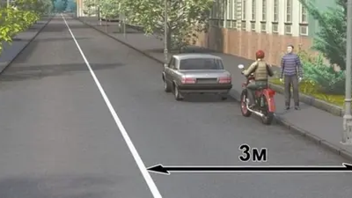 Если расстояние между остановившимися транспортными средствами и сплошной линией разметки менее 3 метров, такая остановка запрещена. (Пункт 12.4 ПДД)