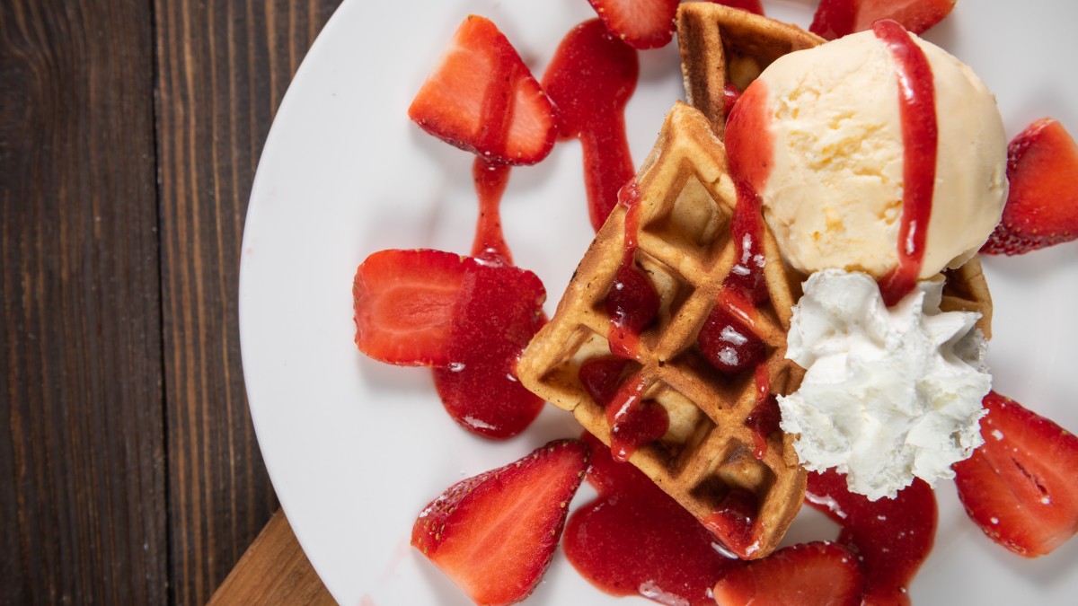 Прогреваем вафельницу, смазываем её маслом и заполняем ячейки тестом. Выпекаем, пока сами не будут отклеиваться от вафельницы.