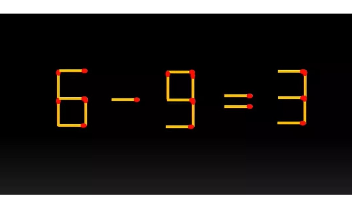 Попробуйте справиться с такой визуальной загадкой. На иллюстрации показано неверное равенство «6-9=3», сложенное из спичек. Запись можно сделать верной, переместив всего одну палочку. Найдите решение за 20 секунд!