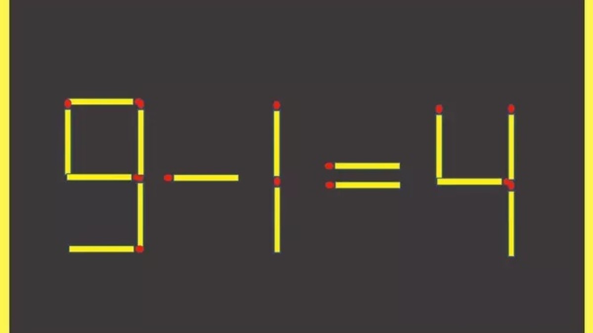На рисунке представлен математический пример «9-1=4», составленный из спичек. Вы видите ошибку в решении, которую необходимо исправить. Переместите всего одну спичку в записи, чтобы равенство стало верным.