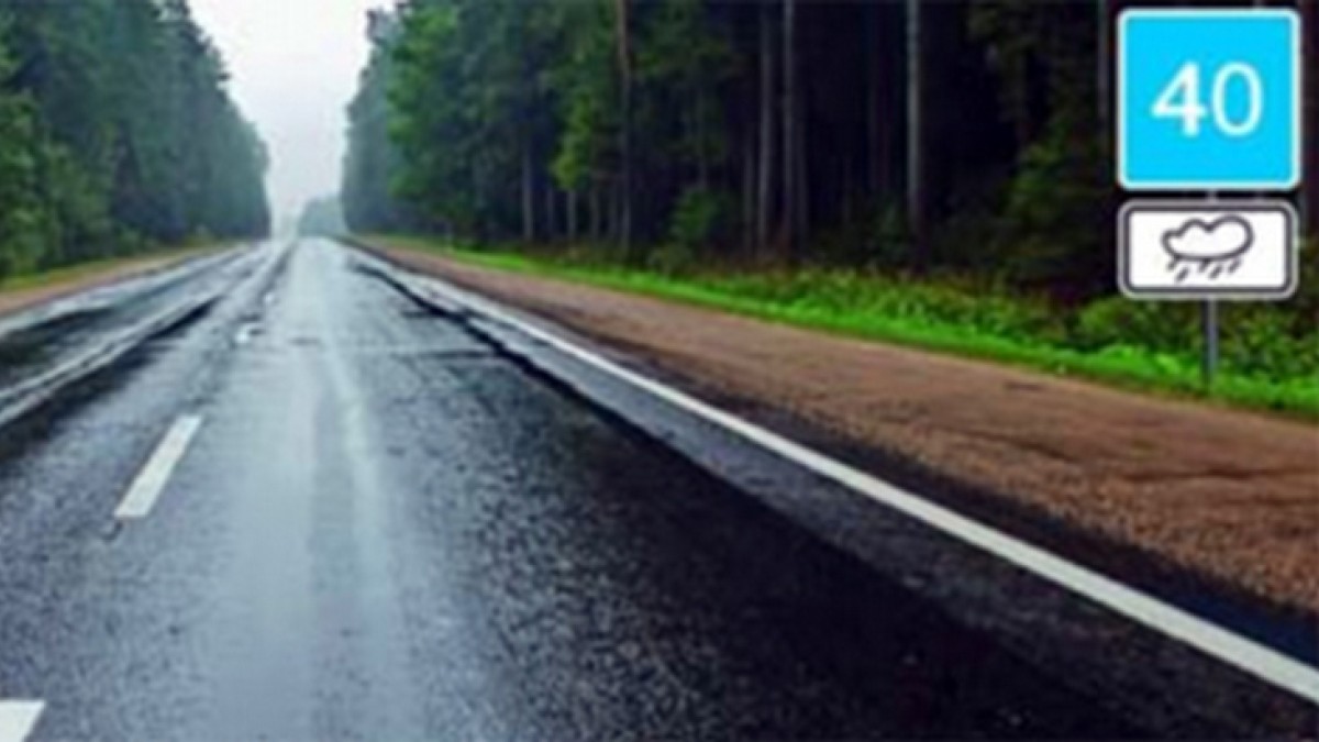 Табличка 8.16 «Влажное покрытие». Действие знака 6.2 «Рекомендуемая скорость» распространяется только на тот период времени, когда проезжая часть влажная.
