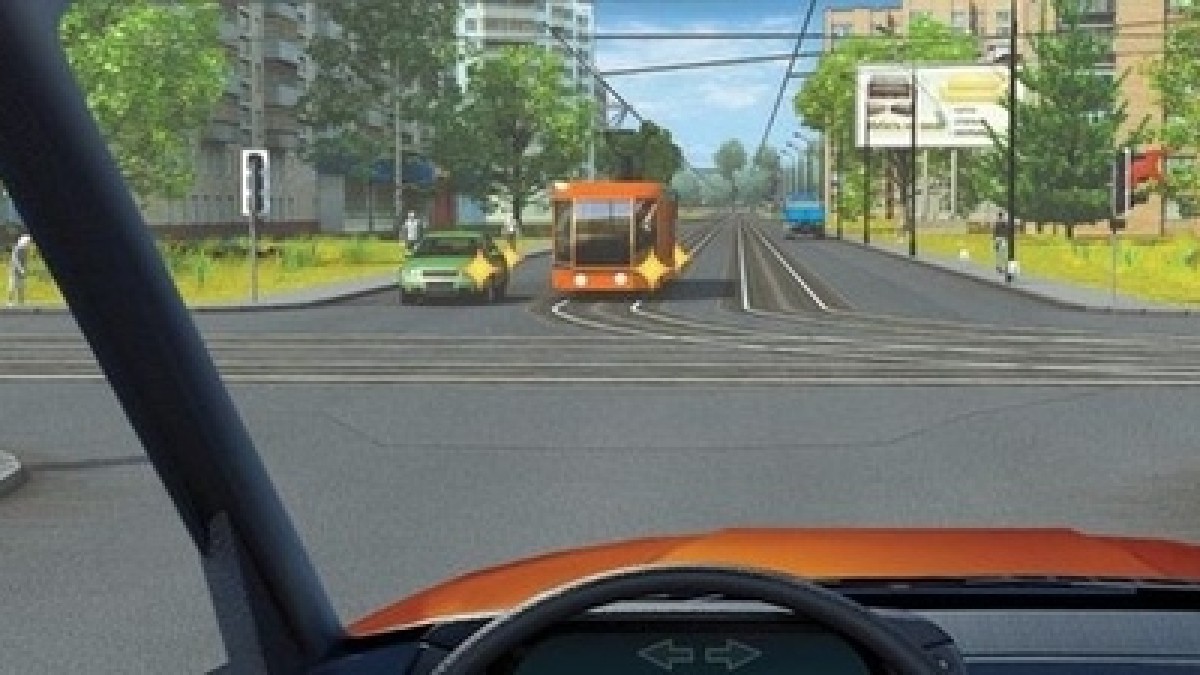 Светофор, ещё одна машина, трамвай. Кого пропустить-то надо?