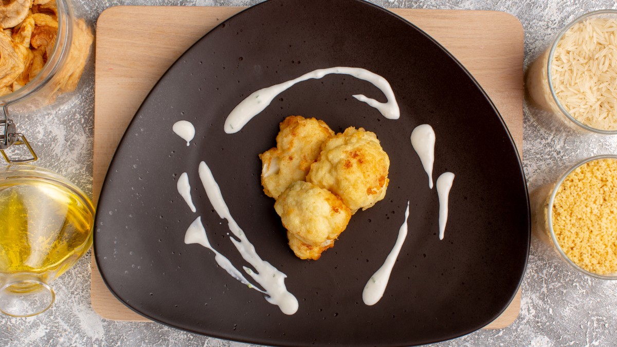 Подаю с чесночным соусом. Для него взбиваю растительное масло, яйцо, лимонный сок, чеснок, соль и перец. Буквально за 20 секунд получается нереальный соус.