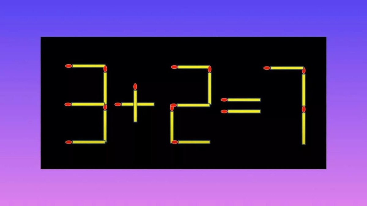Предлагаем вам решить визуальную головоломку. На иллюстрации показан пример «3+2=7», составленный из спичек. Равенство, конечно, не верно. Исправьте пример, переместив в этой записи всего одну спичку.