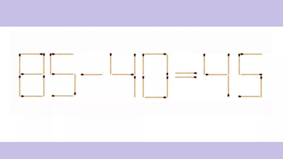 Вы видите неверное равенство «85-40=45», составленное из спичек. По условиям головоломки для исправления ошибки необходимо переместить всего одну спичку в записи. За 12 секунд ответ находят мастера абстрактного мышления, проверьте свой результат.