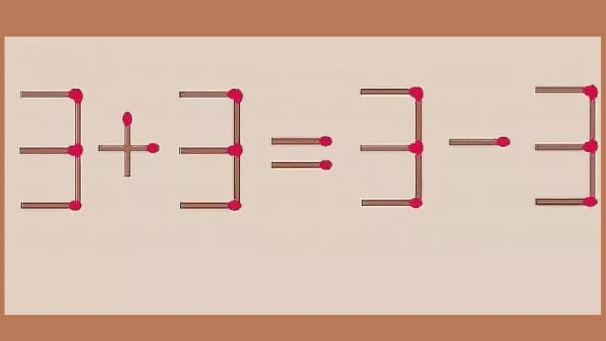 Нам дано неверное равенство «3+3=3-3», в котором требуется исправить ошибку перестановкой всего одной спички. Простые обыватели сдаются через 10 секунд, только сильные личности будут искать ответ до победного конца.