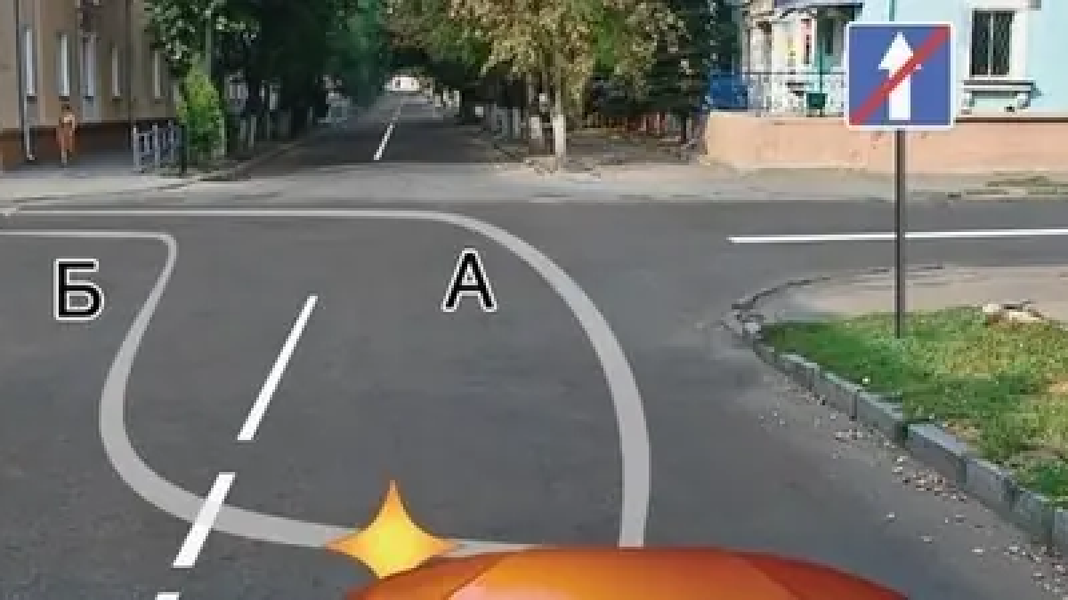 Траектория Б соответствует требованиям ПДД, а траектория А не учитывает правила выполнения поворота. («Дорожные знаки», пункт 8.5 ПДД)