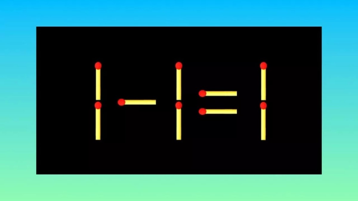 Внимание на рисунок: перед вами хитрая задачка со спичками. В равенстве «1-1=1» допущена ошибка, для исправления нужно переместить всего одну палочку в записи.