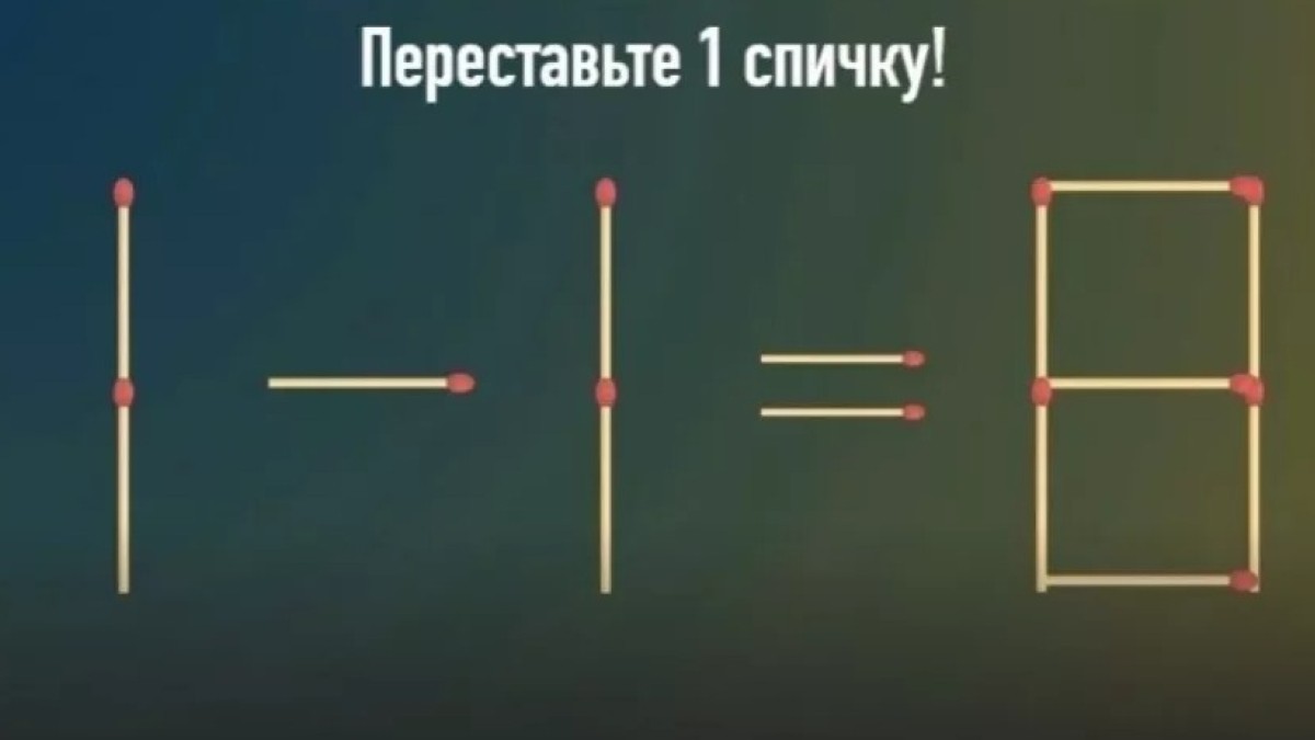 Как видно на иллюстрации, в нашем распоряжении имеется равенство «1-1=8». Оно неверно, а для исправления ошибки следует переместить одну палочку в записи. Проявите свое пространственное мышление и найдите решение за 12 секунд, поехали!