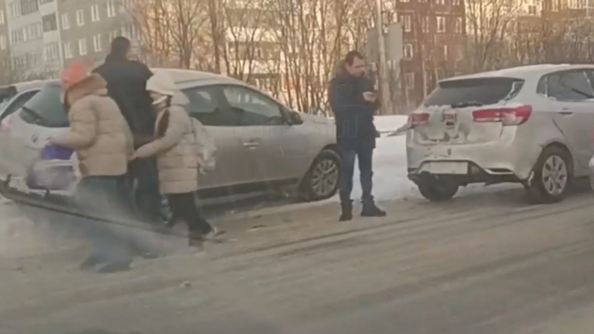 Сегодня в 8 утра возле мурманского ТРЦ «Северное Нагорное» произошло столкновение двух легковых автомобилей, направляющихся в центральную часть города.