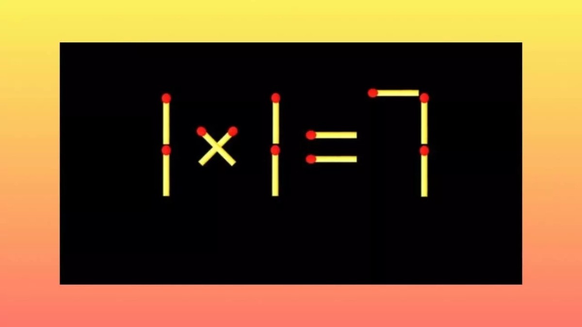 Обратите внимание на изображение, вы видите пример «1×1=7», составленный из спичек. В этом равенстве есть ошибка, будем ее исправлять, перемещая 1 спичку.