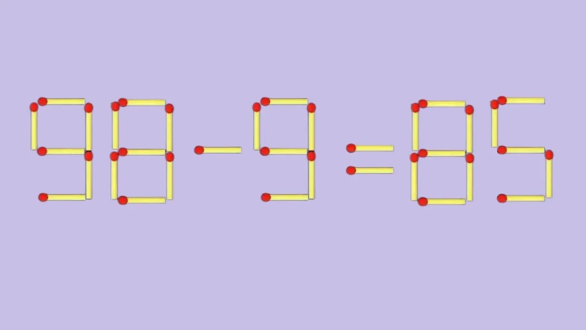 На иллюстрации показано равенство «1-8=5», составленное из спичек. Исправить ошибку в примере вам поможет перестановка двух палочек, главное — определиться, каких именно.