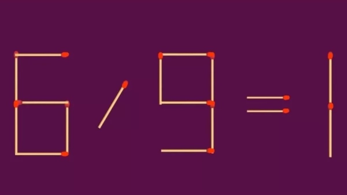 Нам дано изображение с математическим равенством «6/9=1». В пример закралась ошибка, давайте ее исправлять. Для этого разрешается переместить всего одну спичку в записи. Обладатели высокого интеллекта находят ответ за 10 секунд.