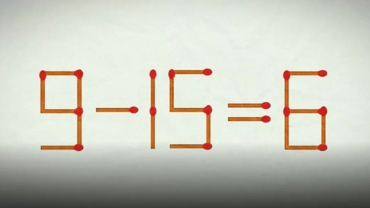 Предлагает вашему вниманию одну из таких загадок. Вы видите на иллюстрации пример «9-15=6», составленный с ошибкой. Перестановка всего одной спички сделает это равенство верным. Продемонстрируйте мощность своего интеллекта.