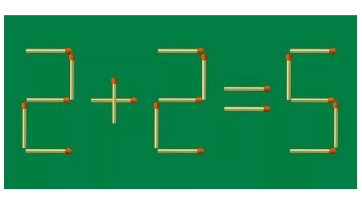 Посмотрите на нашу иллюстрацию. В равенстве «2+2=5» допущена ошибка. Для ее исправления достаточно переместить всего одну спичку, что может быть проще?