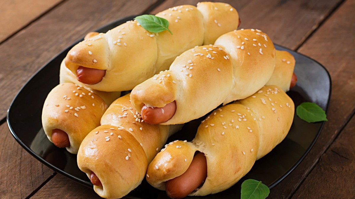Когда тесто подойдет, можно приступать к формированию сосисок.