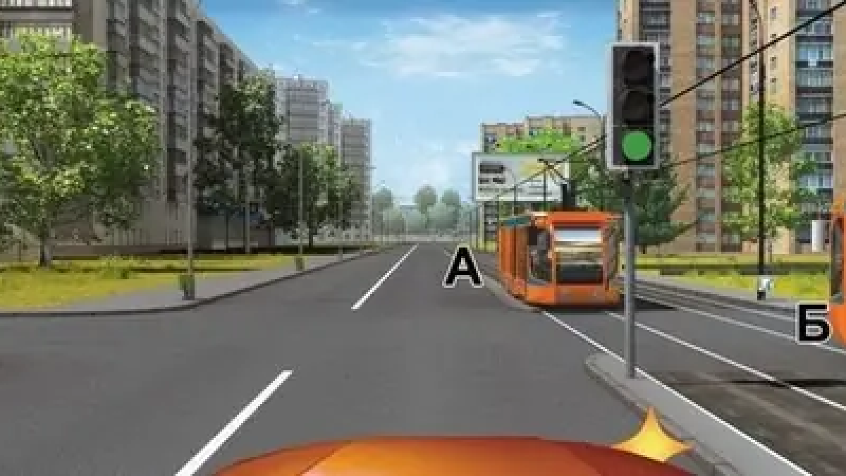 Два трамвая, но вам же повернуть надо. Значит, проезжаем или пропускаем?
