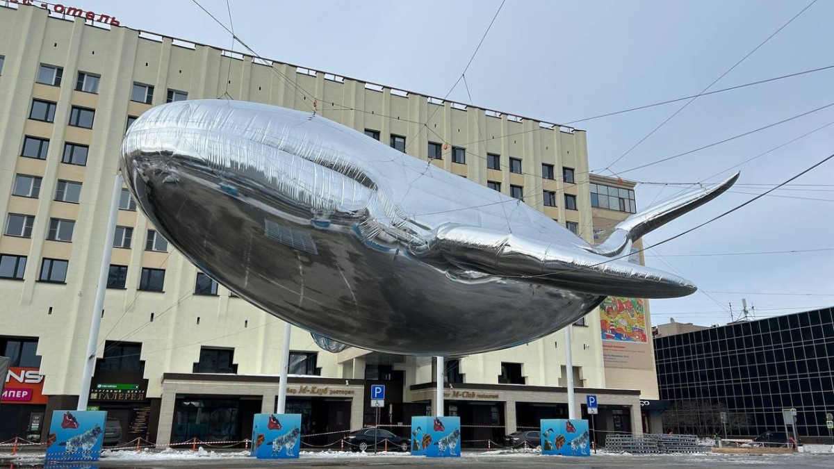 На площади Пять Углов и в сквере возле Дворца культура им. Кирова в Мурманске обосновались огромные морские жители — надувной кит и краб.