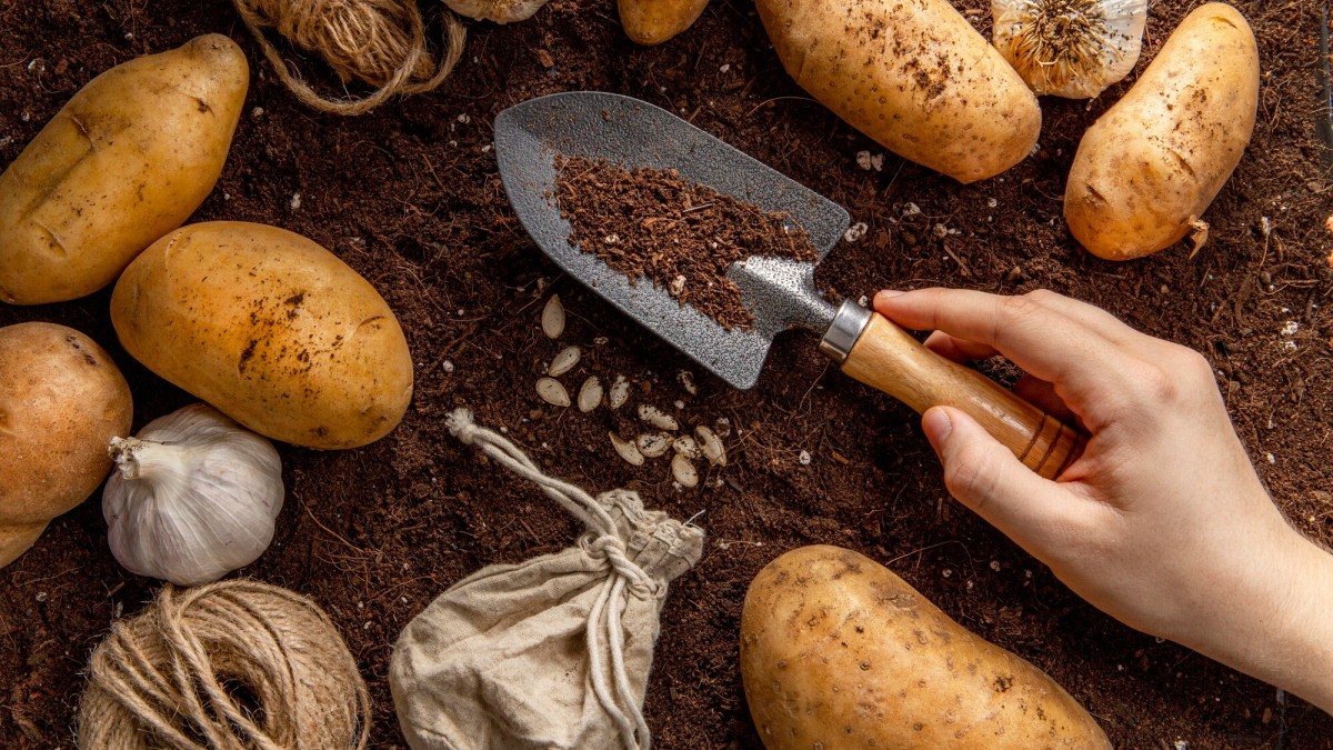 2. Добавление луковой шелухи в лунки при посадке клубней;