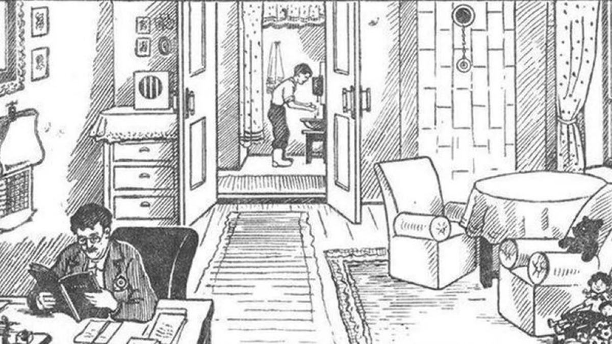 А вот и ответы. На улице зима, потому что мальчик в валенках, а печка топится. Судя по календарю, сейчас идёт декабрь, ведь остался последний лист. А вот водопровода в квартире нет, потому что мальчик умывается из рукомойника.