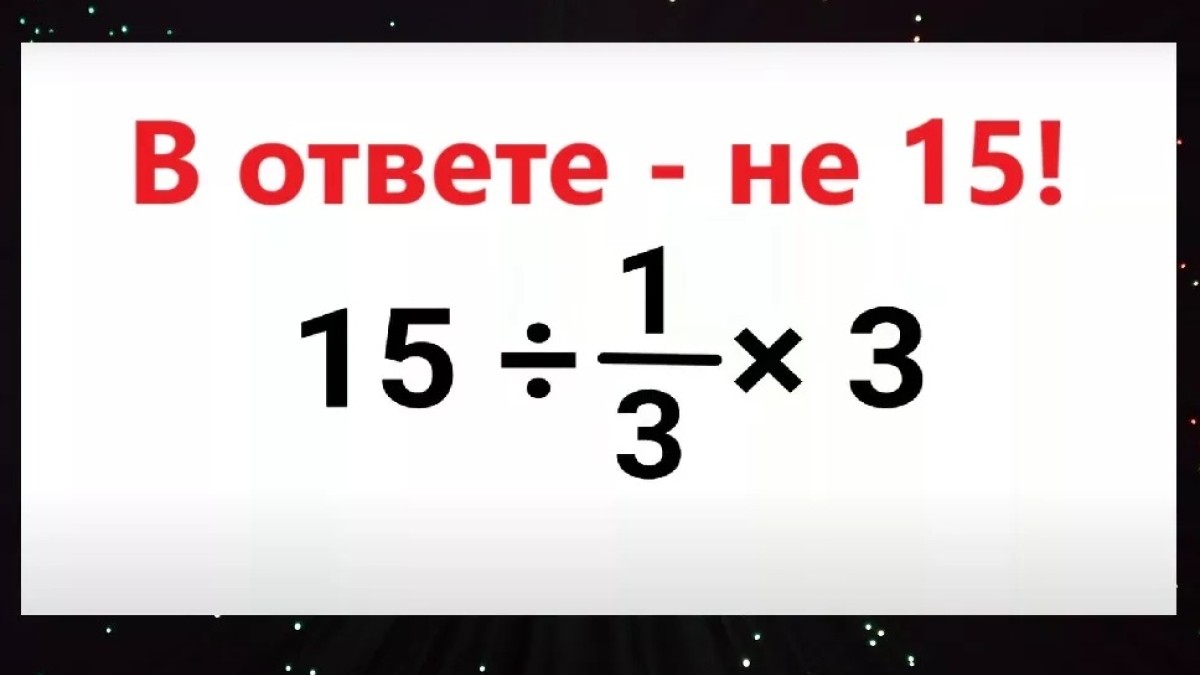 Внимание на иллюстрацию, необходимо произвести расчеты 15:1/3×3. Спешка в этом деле не поможет, вы ведь не хотите проколоться с ответом?