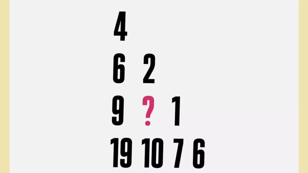 Обратите внимание, что каждое число в этой комбинации — это сумма двух соседних элементов по диагонали. Например, 6=4+2, а 19=10+9. Исходя из этой закономерности, верной заменой вопросительного знака является число 3.