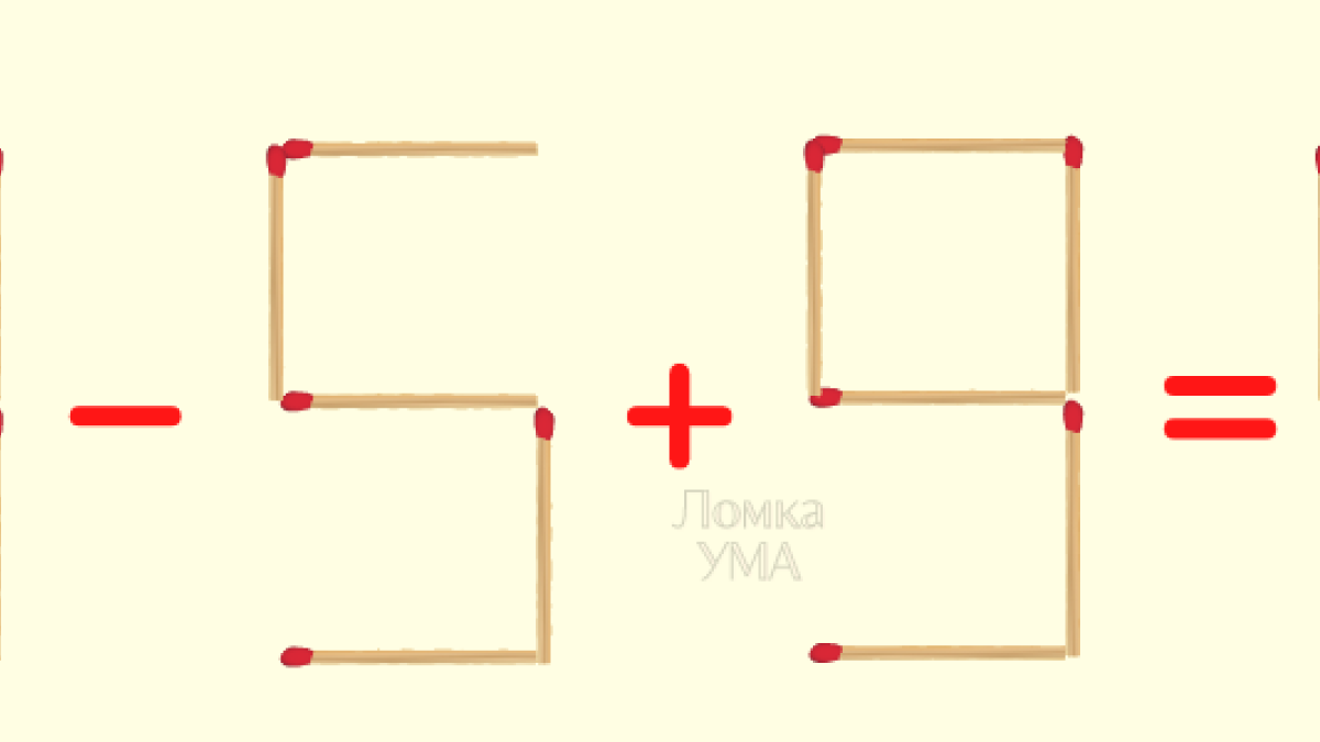 Посмотри внимательно на картинку. Перед вами изображено неравенство 7-5+9=4. Ваша задача переместись всего одну спичку, сделать неравенство верным.