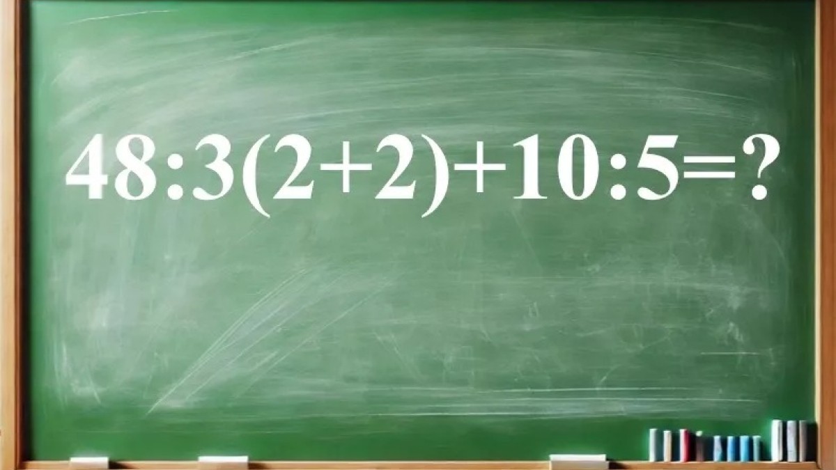 Необходимо высчитать 48:3(2+2)+10:5. В этом задании пять действий, если память вас не подводит, верный порядок решения вы не упустите.