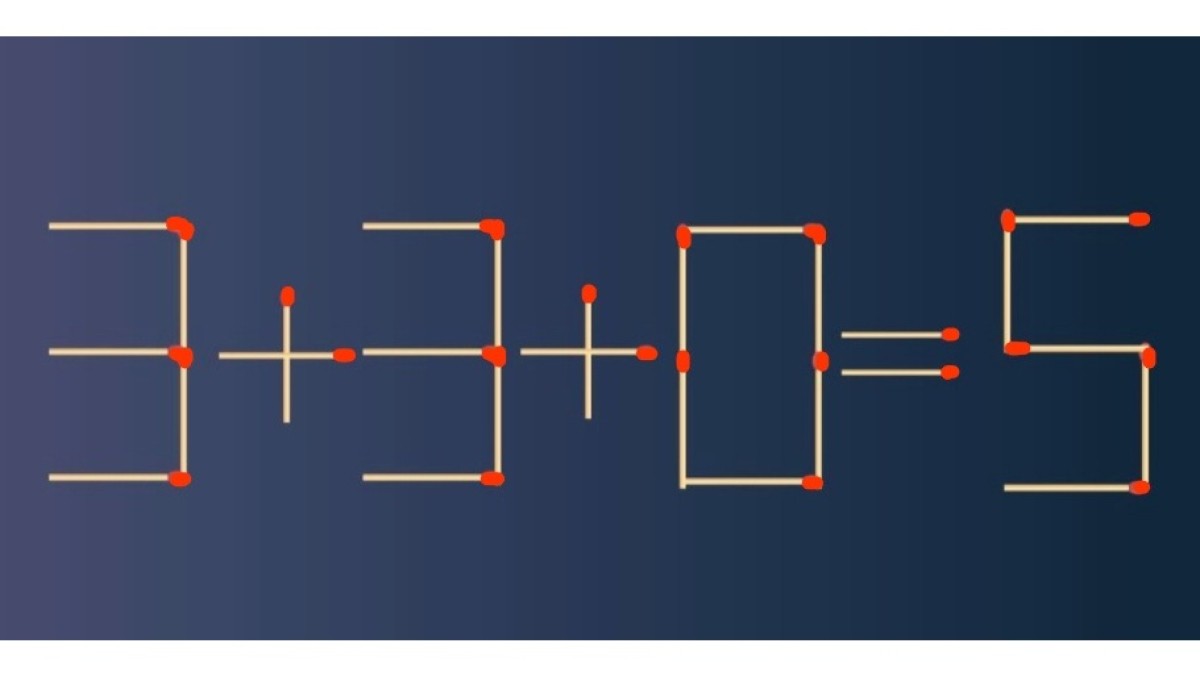 На экране перед вами арифметическое равенство «3+3+0=5». Очевидно, что в пример закралась ошибка. Исправьте запись, переместив всего одну спичку. Мастера справляются с заданием менее, чем за 10 секунд, удачи!