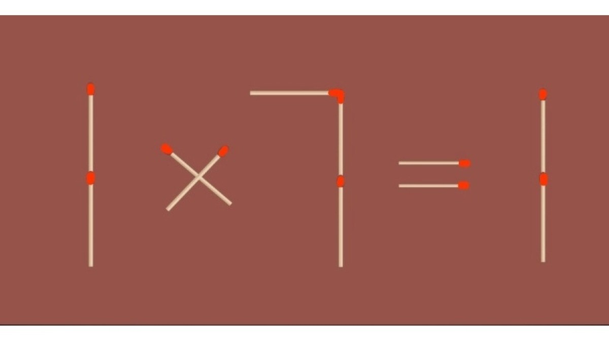 Предлагаем вашему вниманию такую визуальную головоломку. На иллюстрации показано равенство, составленное из спичек. В пример «1×7=1» закралась ошибка. Необходимо переместить всего одну палочку в этой записи, чтобы равенство стало верным.