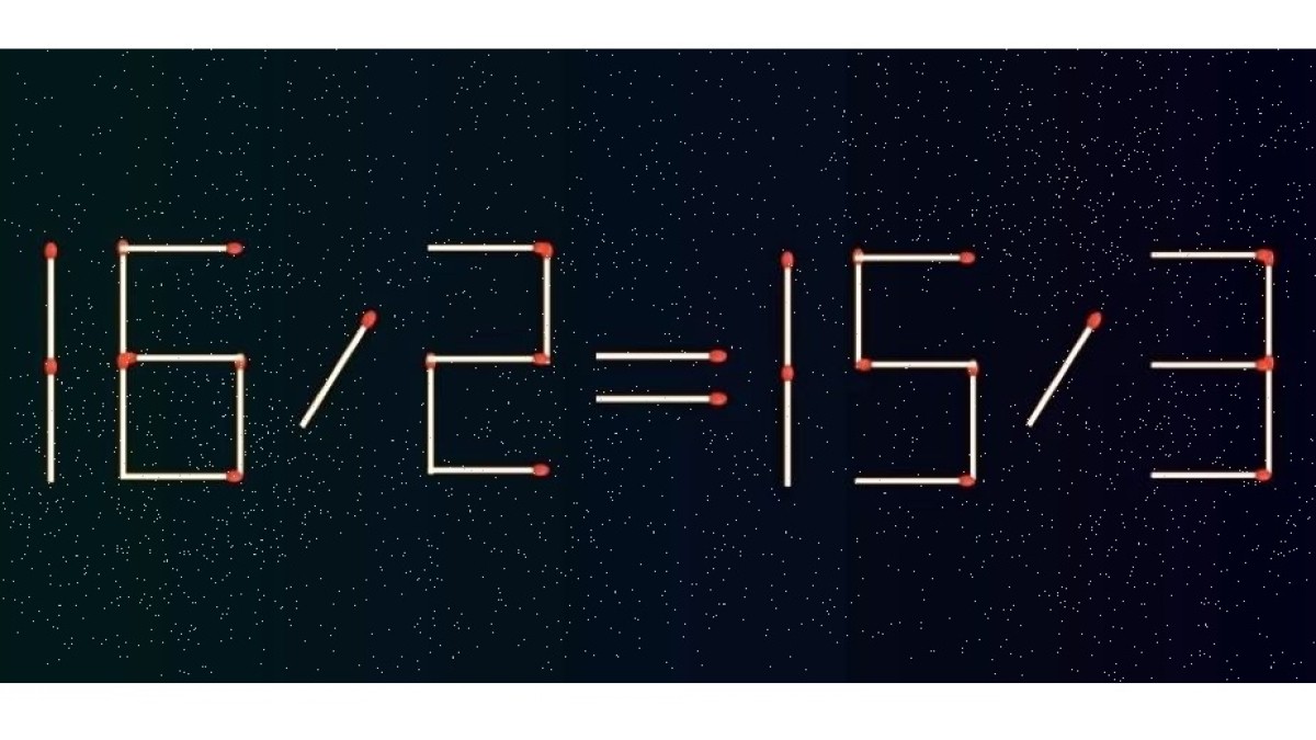 Если вы готовы приобщиться к тренировкам, предлагаем решить классический пример на перестановку спичек. Обратите внимание на иллюстрацию. В записи «16/2=15/3» допущена ошибка.