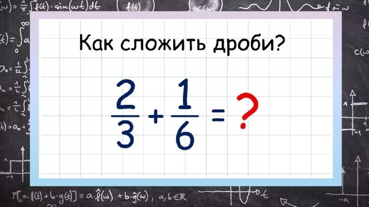Показываем на изображении пример с дробями 2/3+1/6, чтобы вы могли расшевелить нейронные связи. Поищите в закоулках своего сознания правила сложения дробных чисел, в результате подсчетов должен получиться ответ 5/6.