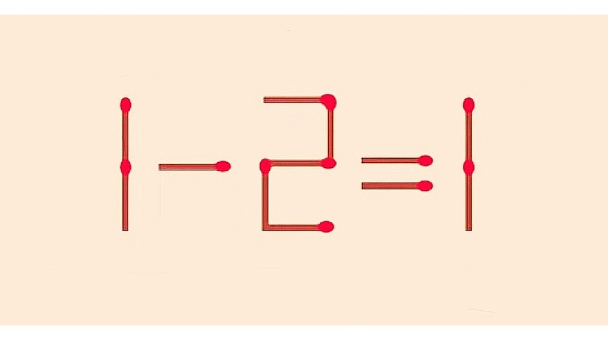 На повестке дня равенство «1-2=1», показанное на рисунке. Ошибку в примере необходимо исправить, переместив всего одну спичку в этой записи. Кроме цифр для перестановки подходят и арифметические знаки, смелее!