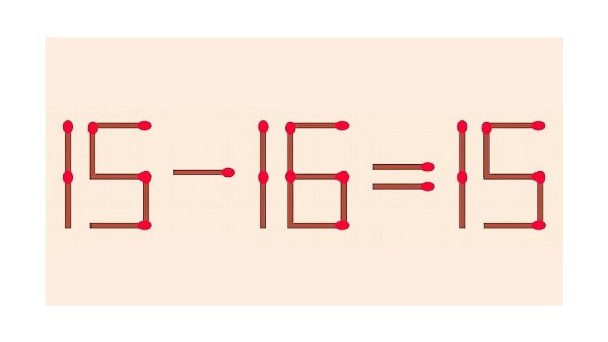 Вот задание на рисунке, в равенстве «15-16=15» необходимо исправить ошибку. Для этого необходимо передвинуть только одну спичку, остальные не трогаем.
