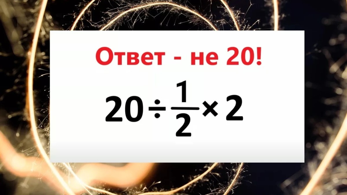 На иллюстрации показано задание 20÷½·2. Выполните нехитрые подсчеты устно и без ошибок, ведь когда-то и вы сидели за партой. Засомневались в своих вычислениях — тогда проверяем вместе.