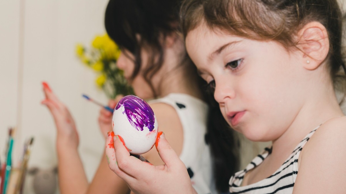 Отварите яйца, затем покрасьте их, используя натуральные красители (например, луковую шелуху).