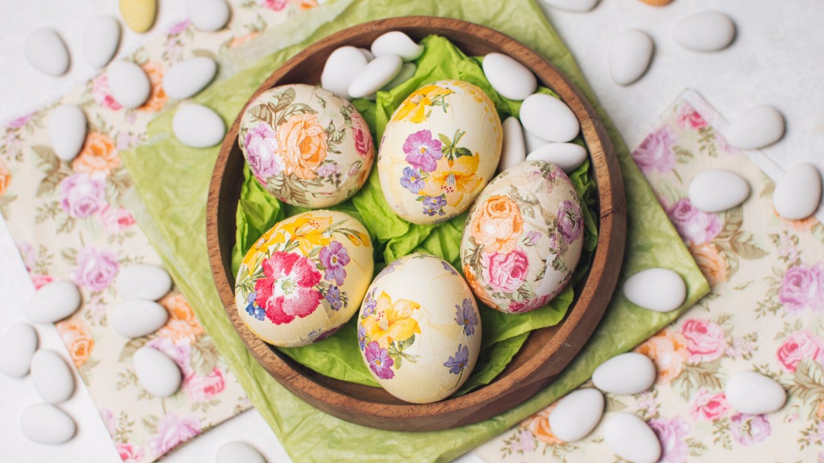 Декупаж — это техника декорирования предметов путем наклеивания изображений на их поверхность. Для работы потребуется бумажная салфетка с понравившимся рисунком и сырой яичный белок, который выступит в роли клея.