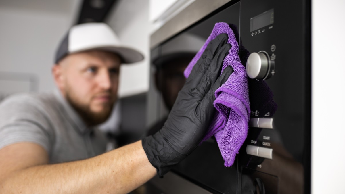 Снаружи микроволновку моем при помощи кондиционера для белья. Просто нанесите его на салфетку и протрите.