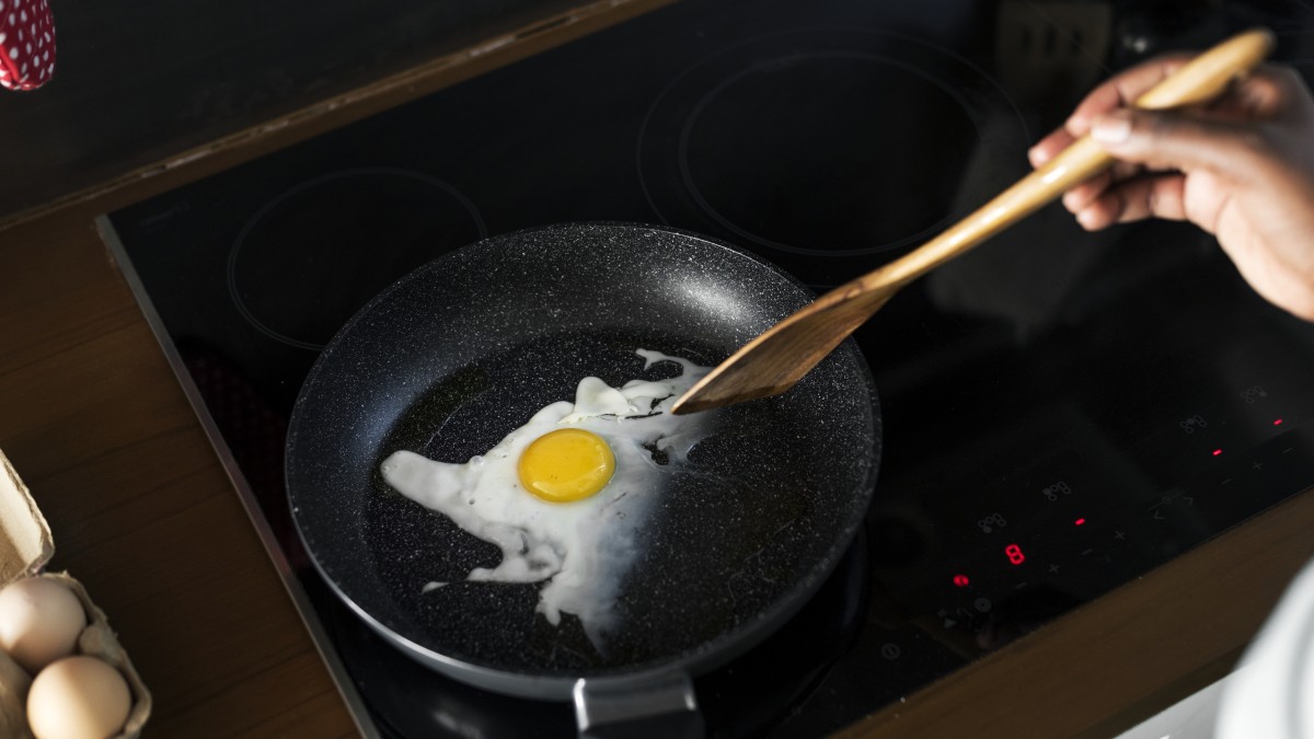 Посуда. Неверный выбор сковороды приведёт к тому, что яичница просто пригорит.