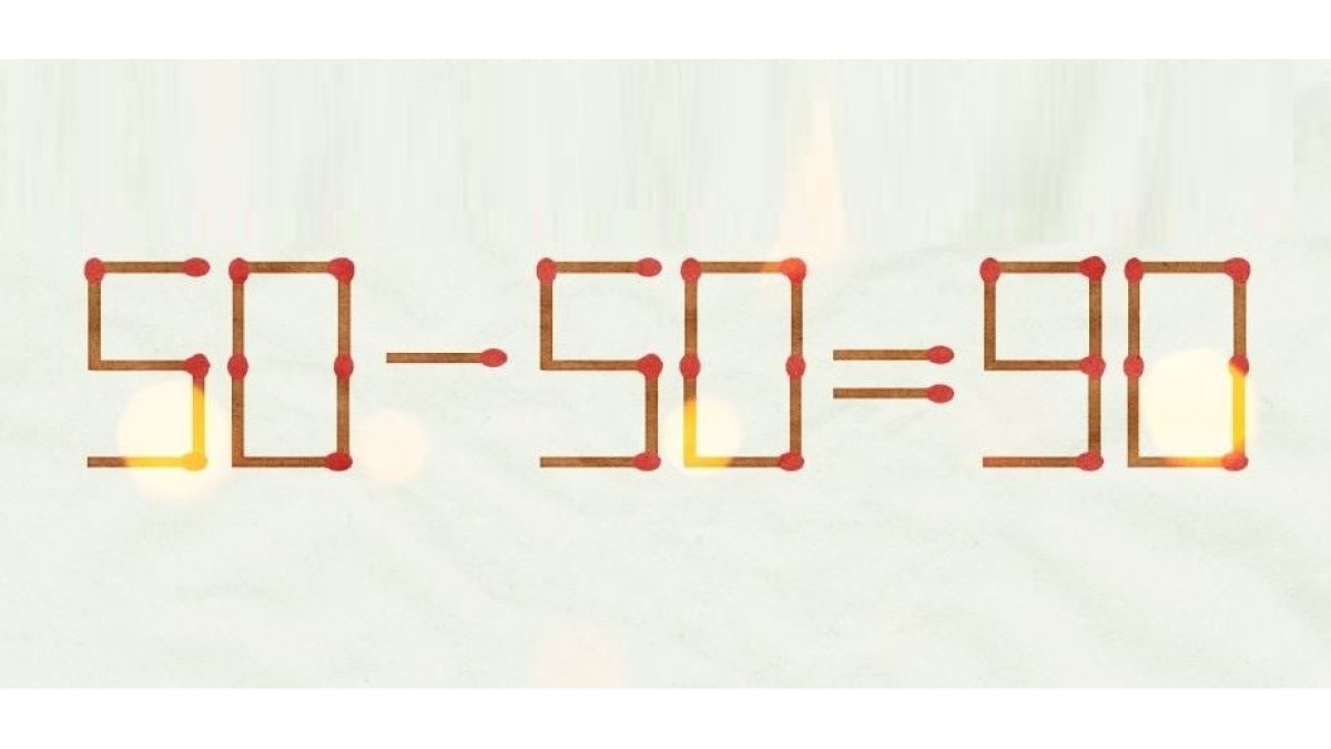 Посмотрите на иллюстрацию. Предлагаем вам позабавиться со спичками, из которых составлено равенство «50-50=90». Ловкой перестановкой всего одного звена, одной спички, можно сделать эту запись верной.