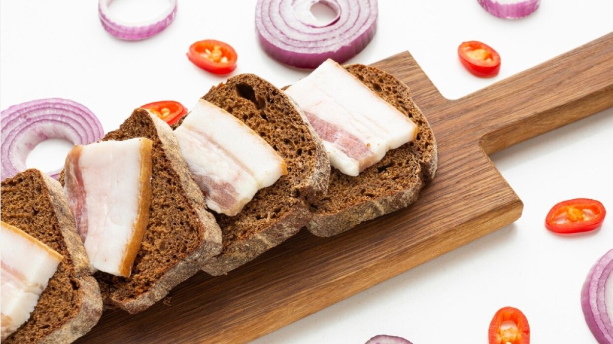 Сало лучше есть с черным хлебом, квашеной капустой и огурцами. Его употребление с белым хлебом негативно влияет на поджелудочную железу.