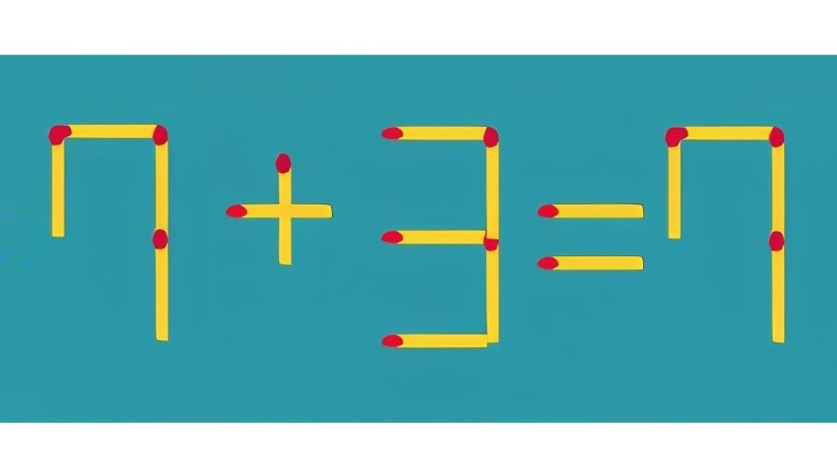 Вот классическая задачка, показанная на иллюстрации. Равенство «7+3=7» ошибочно, переместите одну спичку в записи для исправления равенства. Ломать или убирать остальные палочки нельзя, аккуратно.