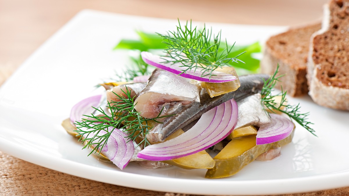 Смешайте прованские травы, перец, 2 чайной ложки соли и одну сахара. Также нужно крупными кольцами нарезать лук. Его укладываем на дно банки объёмом пол-литра, сверху лавровый лист и немного присыпать приготовленной смесью. Теперь можно положить первый слой рыбы. Затем снова присыпать смесью приправ и выложить второй слой. И так до самого верха.