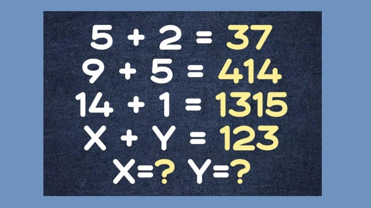 Сегодня мы озадачим вас числовым ребусом, показанным на иллюстрации. Верхние три строчки дают нам странные суммы чисел, очевидно, они составлены по хитрой закономерности. Как только вы ее нащупаете, определить Х и У не составит труда.